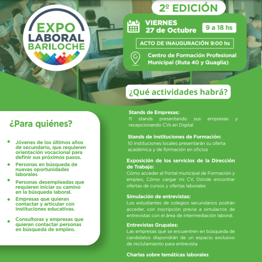 Info e inscripciones en: https://linktr.ee/ExpoLaboralBariloche